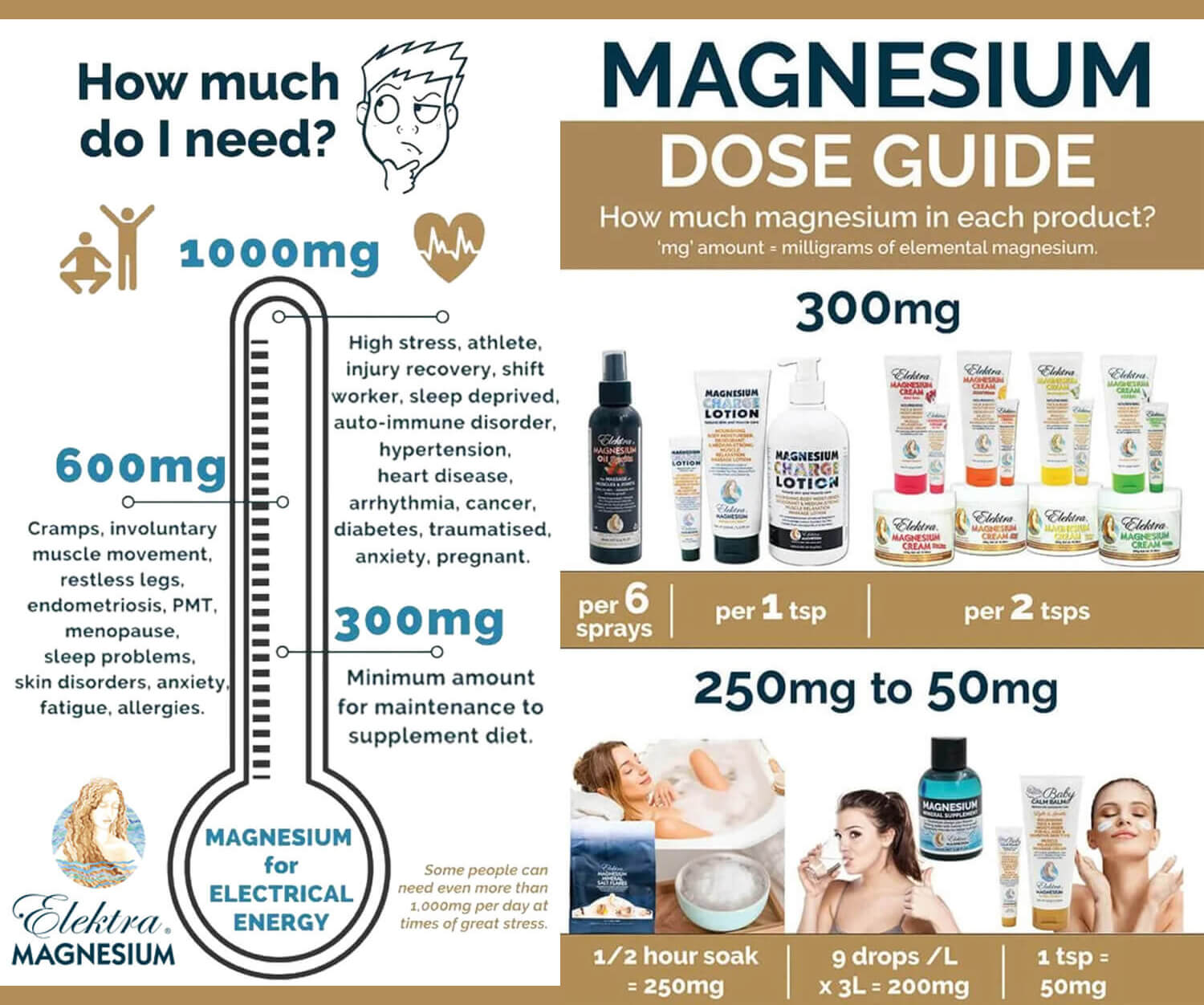 ABOUT ELEKTRA MAGNESIUM CREAM: We recognised the need for a product that would be used daily as functional skin care as well as magnesium nutrition. It's not a medicine that is used only occasionally, and then left in the cupboard like aspirin. Magnesium Cream is a food your body can absorb via skin, thereby avoiding any issues with digestion.