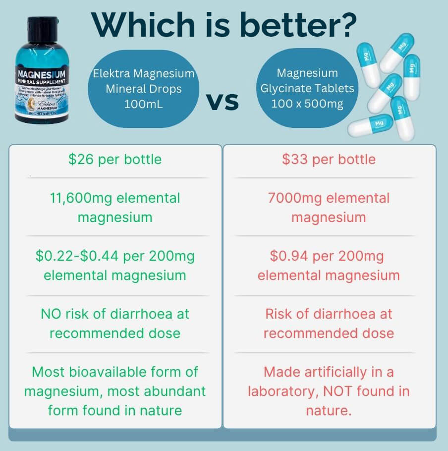$36.30 for 180mL. Although you can use as much as you like and need, if you spray 6 times a day to get 300mg magnesium, that’s about 60 cents a day. This also outperforms magnesium tablets with much better value for money.