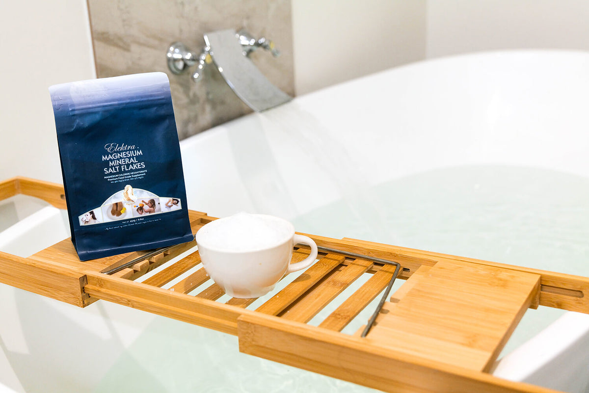 When you have had a really grueling day, you are super exhausted and there is nothing left in the tank, relax and let all your cares go away in a magnesium chloride bath soak. Soaking with ELEKTRA™ Magnesium Flakes can deliver conservatively 300-400mg of elemental magnesium to the epidermis over half an hour via a natural and passive trans-membrane electrolyte exchange.